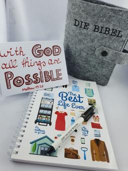 - 1x Notizbuch z.B. Best life ever (Abbildung exemplarisch! Je nach Lagerbestand kann auch ein anderer Titel dabei sein!)